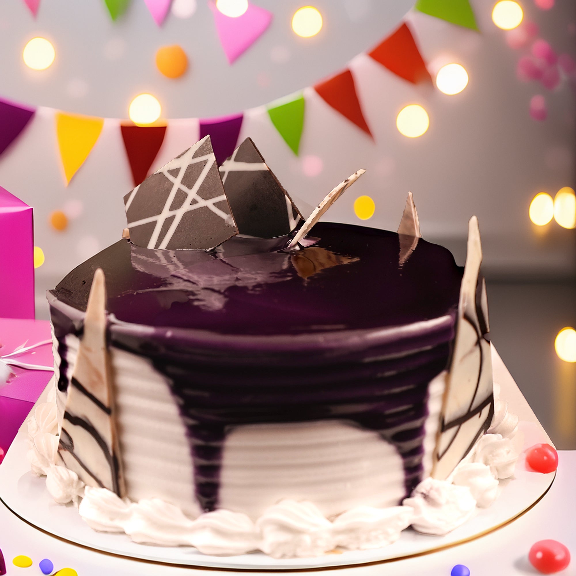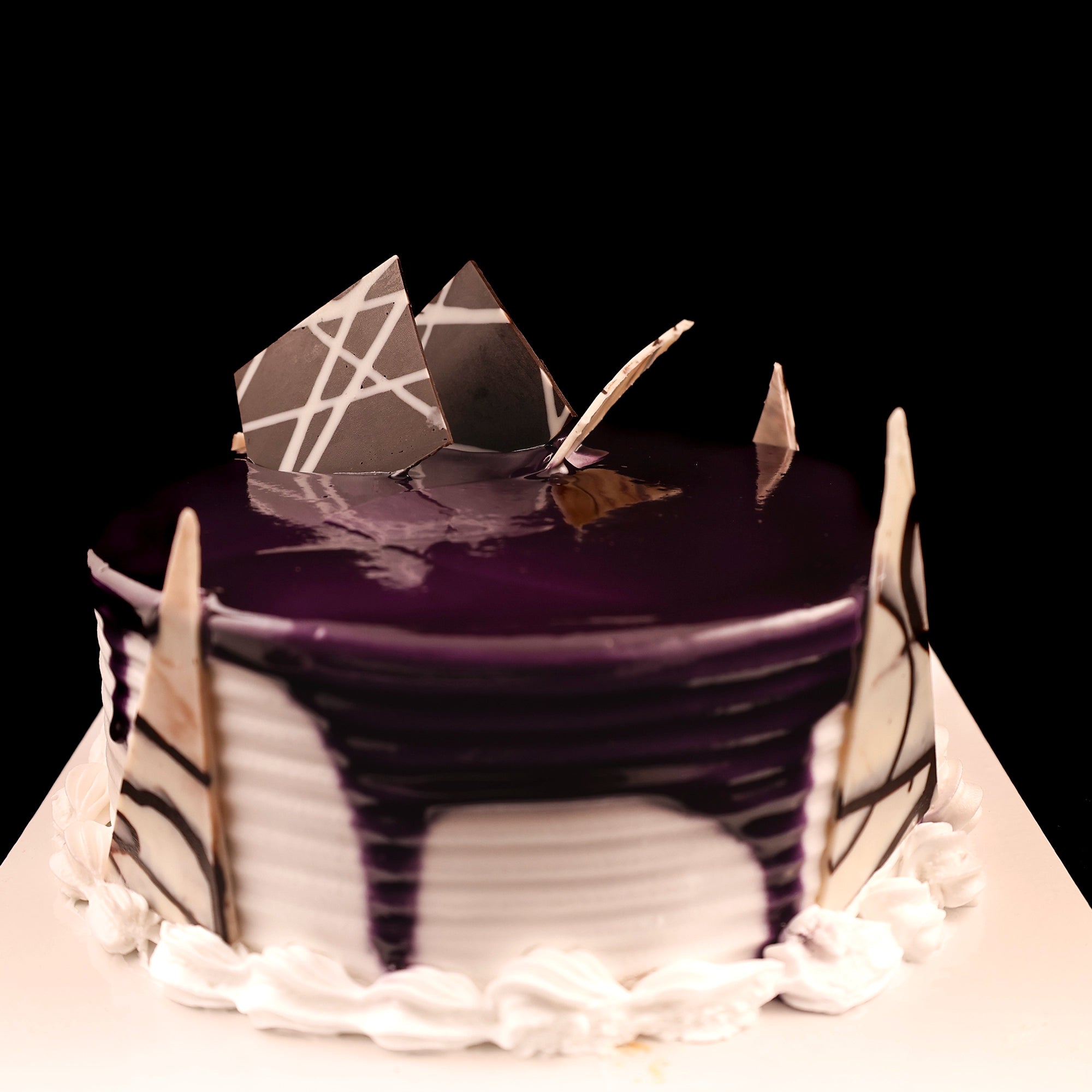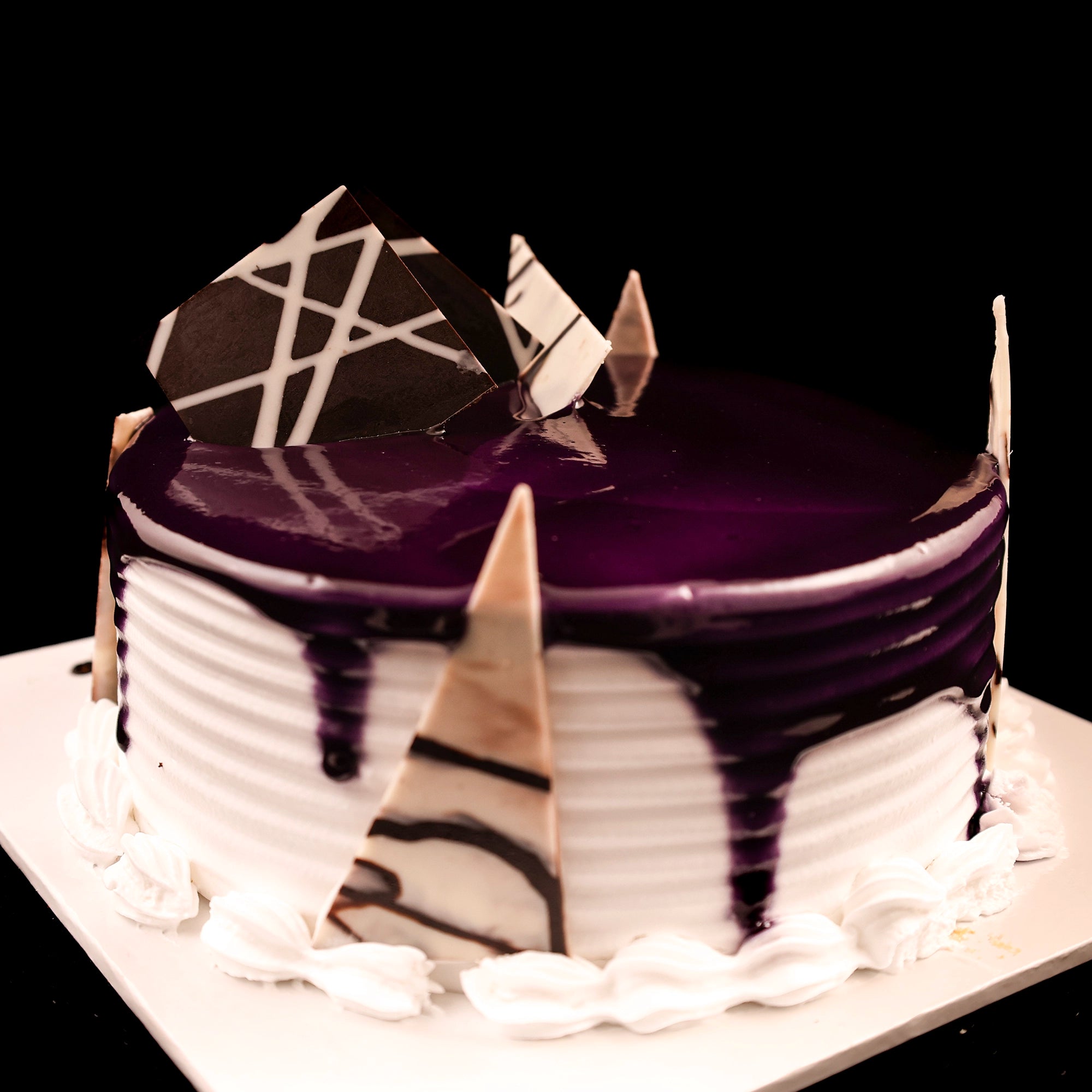 Indulge in the fruity goodness of our Black Currant Cake. Moist vanilla sponge cake layers filled with tangy black currant compote and creamy frosting, this cake is a true delight...