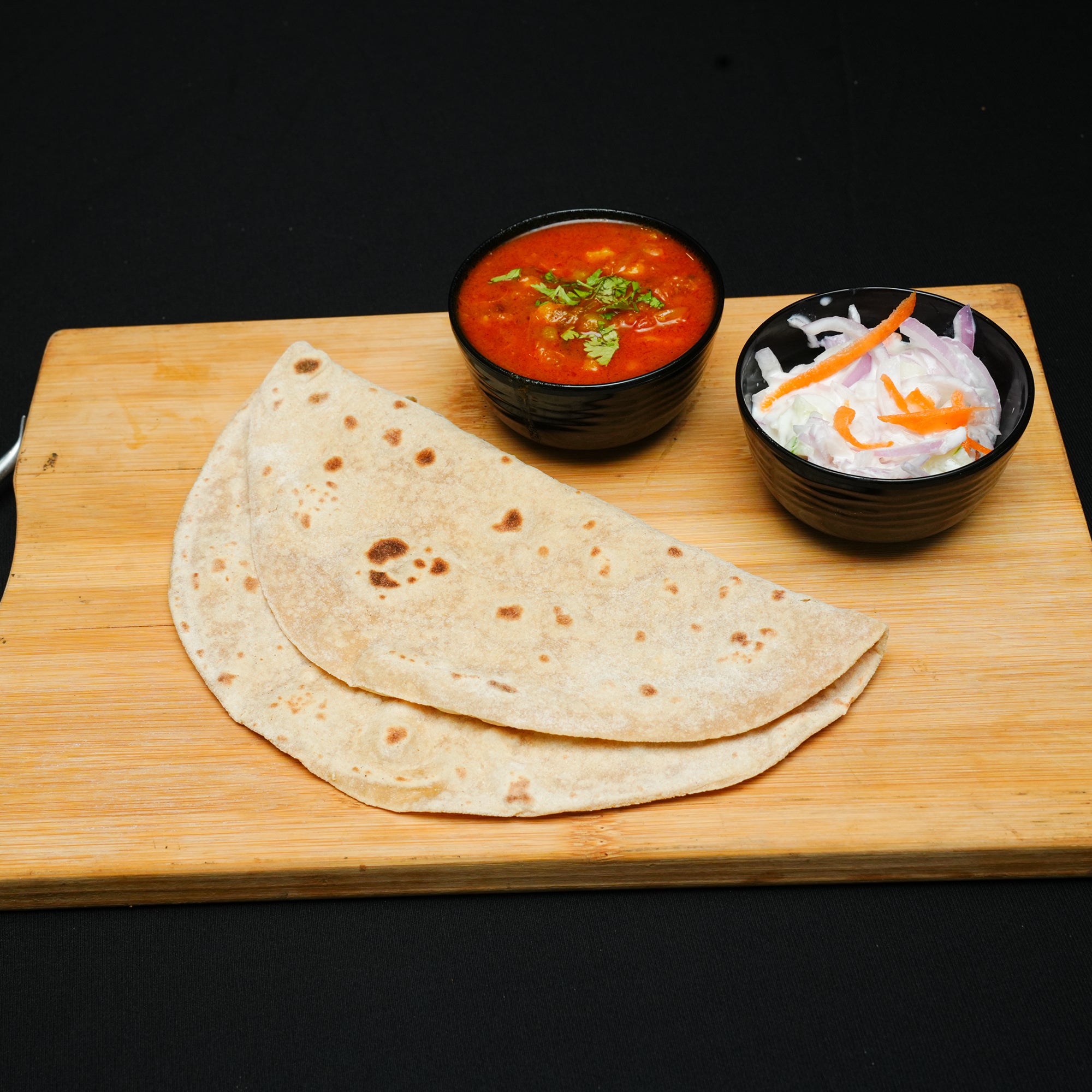 Soft, whole wheat chapathis (2pcs)  served with a creamy and flavorful vegetable kurma made with coconut and aromatic spices.A wholesome and satisfying meal that’s perfect for any time of the...