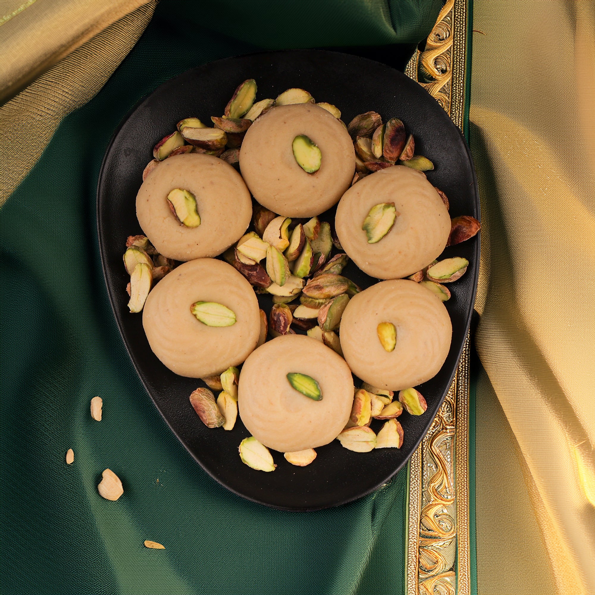 Delight in the creaminess of White Peda. These milk-based sweets are shaped into small rounds, offering a rich and sweet flavor that is perfect for indulging in moments of celebration or as a sweet gesture for your loved ones.