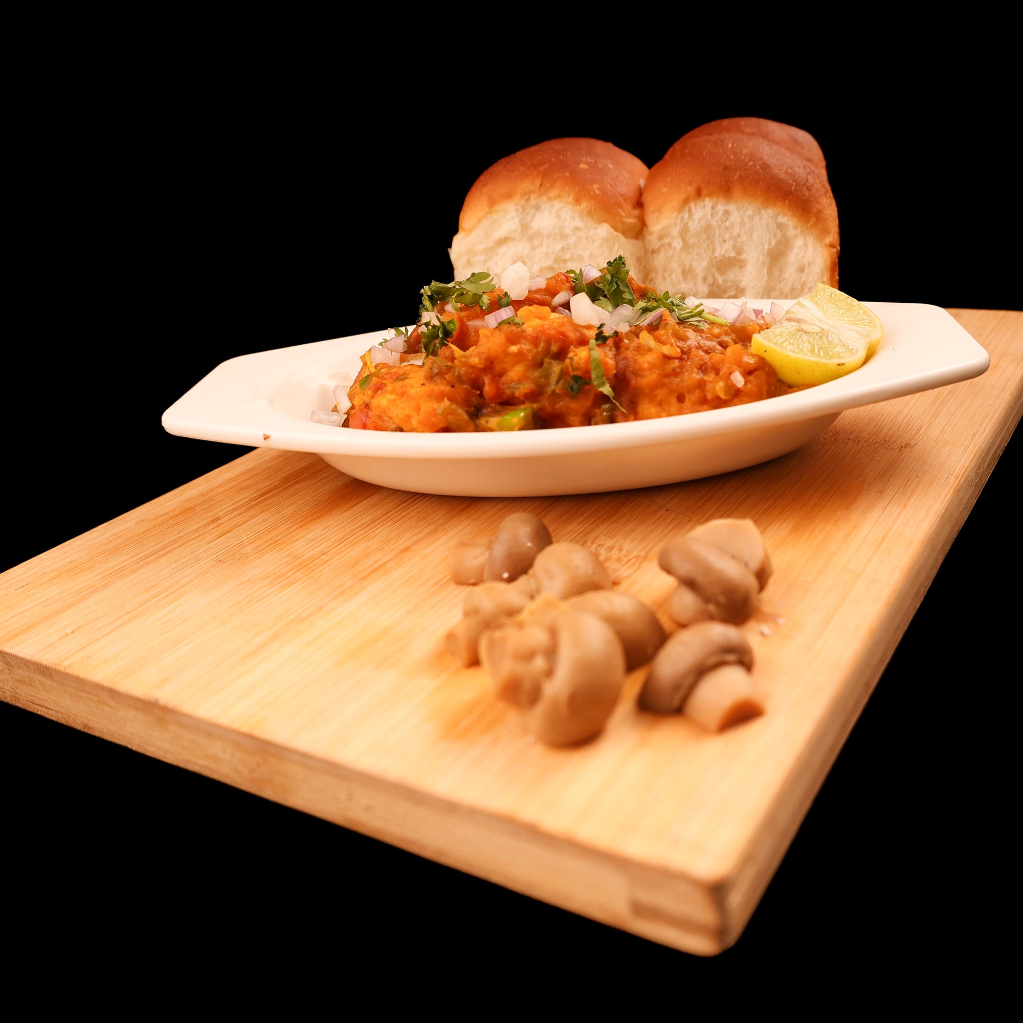 A delicious and spicy bhaji made with tender mushrooms sautéed in butter, onions, tomatoes, and aromatic Indian spices. Perfectly cooked to a rich, dry consistency and served with butter-toasted pav...