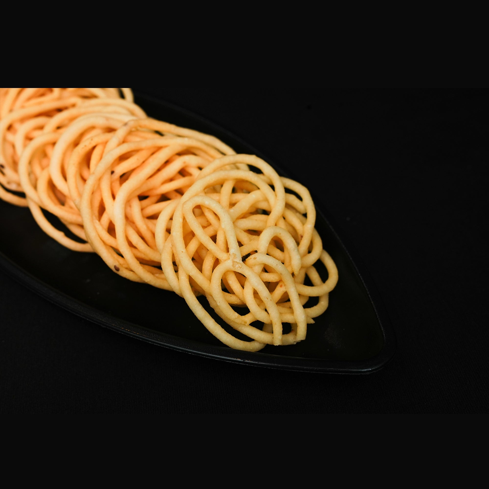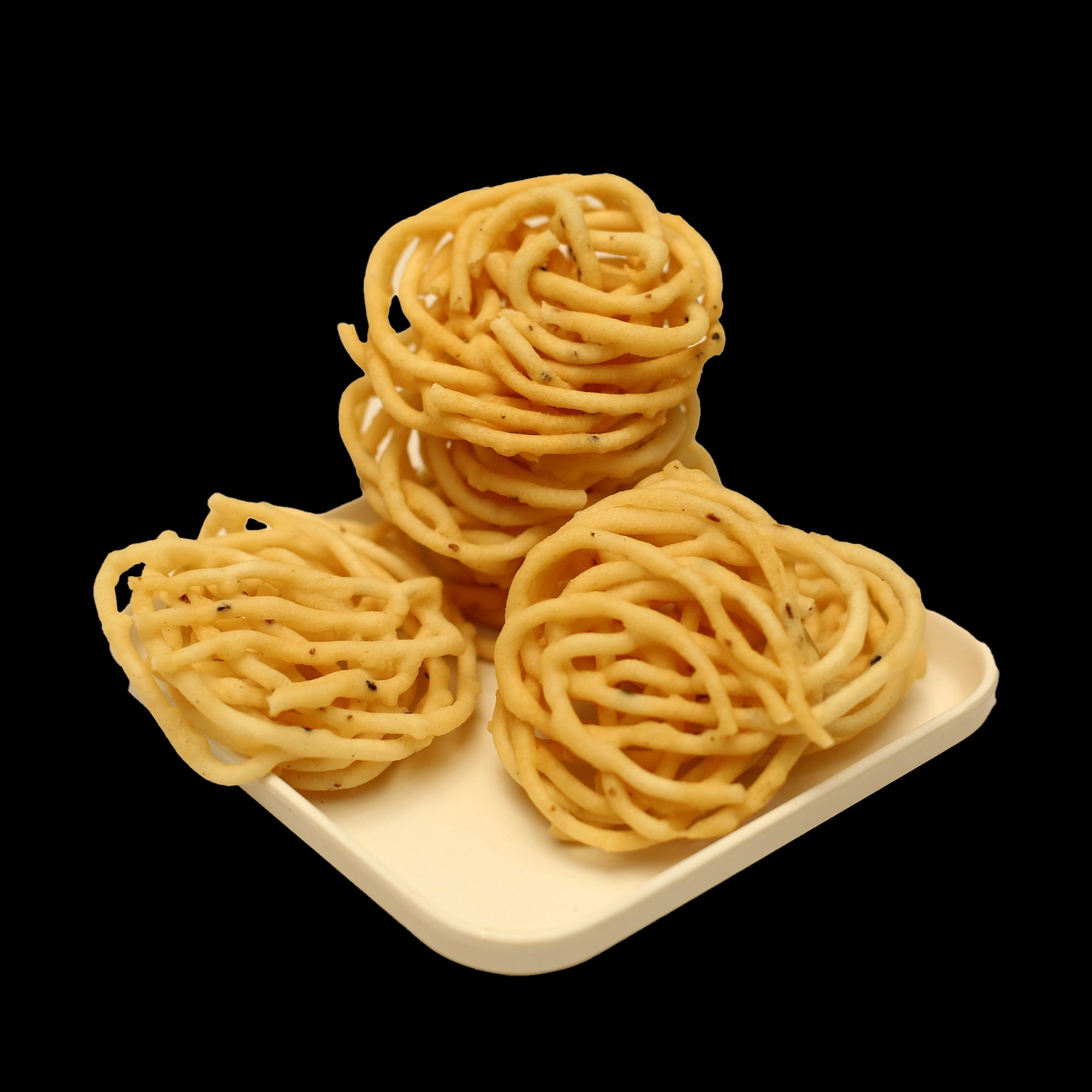 Crunch into the perfect blend of flavors with our Thenkuzhal Murukku. Crispy and crunchy rice flour snacks  these savory treats are perfect for snacking on any time of the day....